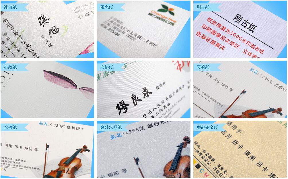 各種特種紙名片效果圖