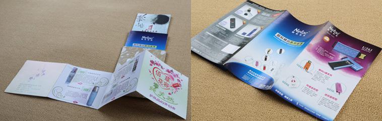 折頁是宣傳單一種常見的樣式,大部分采用四色印刷,一般為8開二折或四折,16開二折或三折,中間內(nèi)容視產(chǎn)品而定。設計要盡量精致美觀, 展示的產(chǎn)品應選擇佳角度,力求逼真和清晰,字體清秀,色調(diào)與內(nèi)容和諧,以增加客戶購買力為終目的。